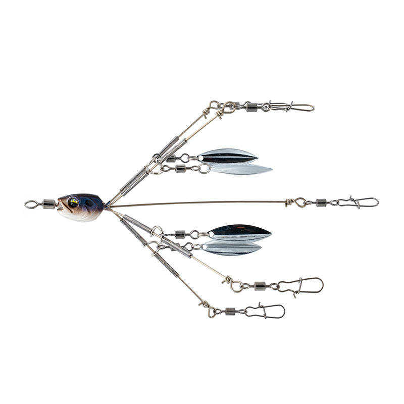 Det nedskalerte 4.8"-hodet har samme gjennomførte detaljer som de større modellene, med skulpturert 3D-hode og integrert svivel som gir bedre balanse under innsveiving og under kjøring av fisk. De sterke wire-armene tåler harde påkjenninger uten å knekke eller kinke, selv ved fiske rundt strukturer.
