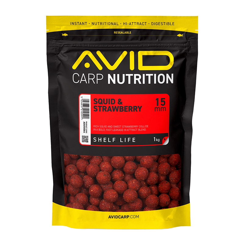 Squid and Strawberry Classic Boilies kombinerer kraftig squid-aroma med en tydelig jordbærprofil. Denne miksens duft og smak gir et attraktivt signal som skiller seg ut, både på korte økter og ved lengre fôring. Boiliene er utviklet for å gi rask respons, men samtidig gi god næring slik at fisken gjerne kommer tilbake til plassen.