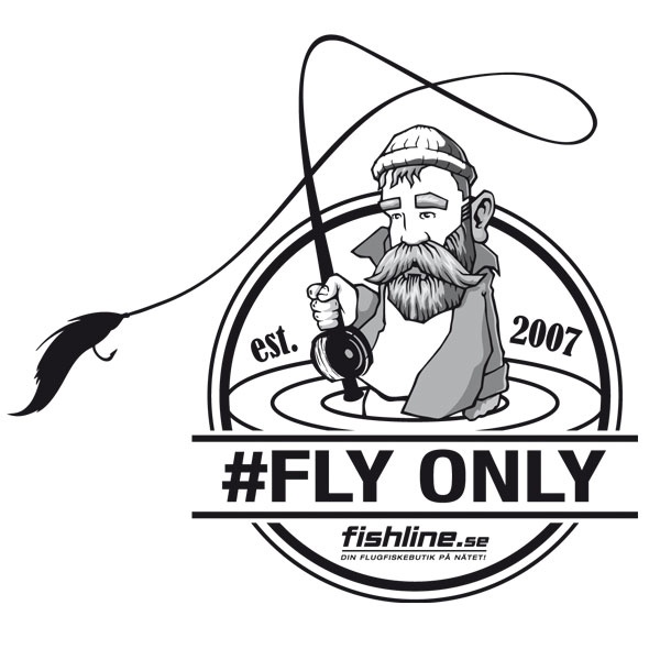 Fishline FLY ONLY klistremerke er vann- og UV-bestandig, perfekt for lysere bakgrunner.