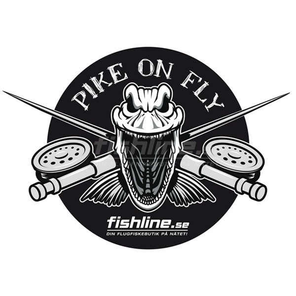 Fishline Pike on Fly sticker er et vann- og UV-bestandig klistremerke, perfekt for fiskeutstyr.