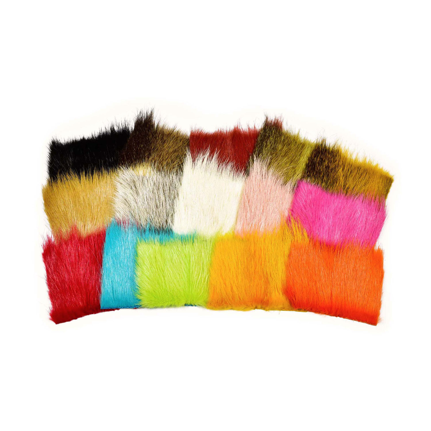 Til Zonkers, og kanskje best til beina og antennene til eldre rekefluer. Vi har valgt å farge klare farger fra kritt hvite skinn samt fra flekkete skinn - de vi kaller Sapphire. Emballasjen er generøs med et stort dobbelt brettet stykke skåret fra midten av ryggen. Dette betyr at alle pakker inneholder både det mykere buk håret og det lengre, skinnende rygghåret. Vi ser dette som et klart undervurdert vingemateriale for små og mellomstore fluer. Håret gir vinger med fint lysgjennomslipp og en fin glans.