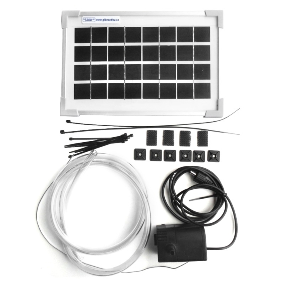 Solen driver automatisk båtdrenering med sol-lensepumpen. Kapasitet: 225 l/t, perfekt for opptil 100 mm regn per måned.