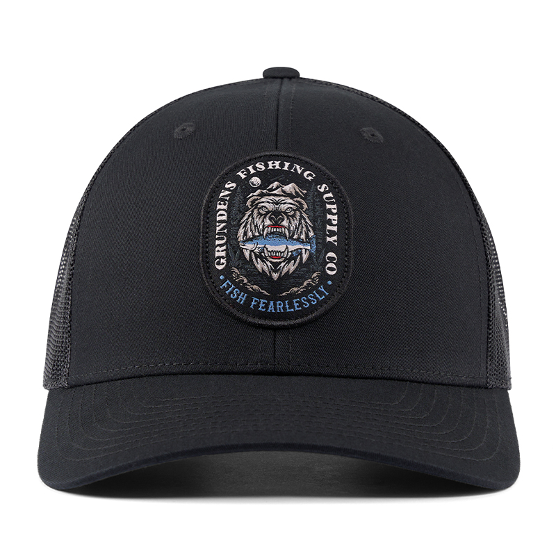Bear Essentials-truckerhatten er en naturlig sportsfisker med sin komfortable, avslappede stil og dyktige fiskejegergrafikk.