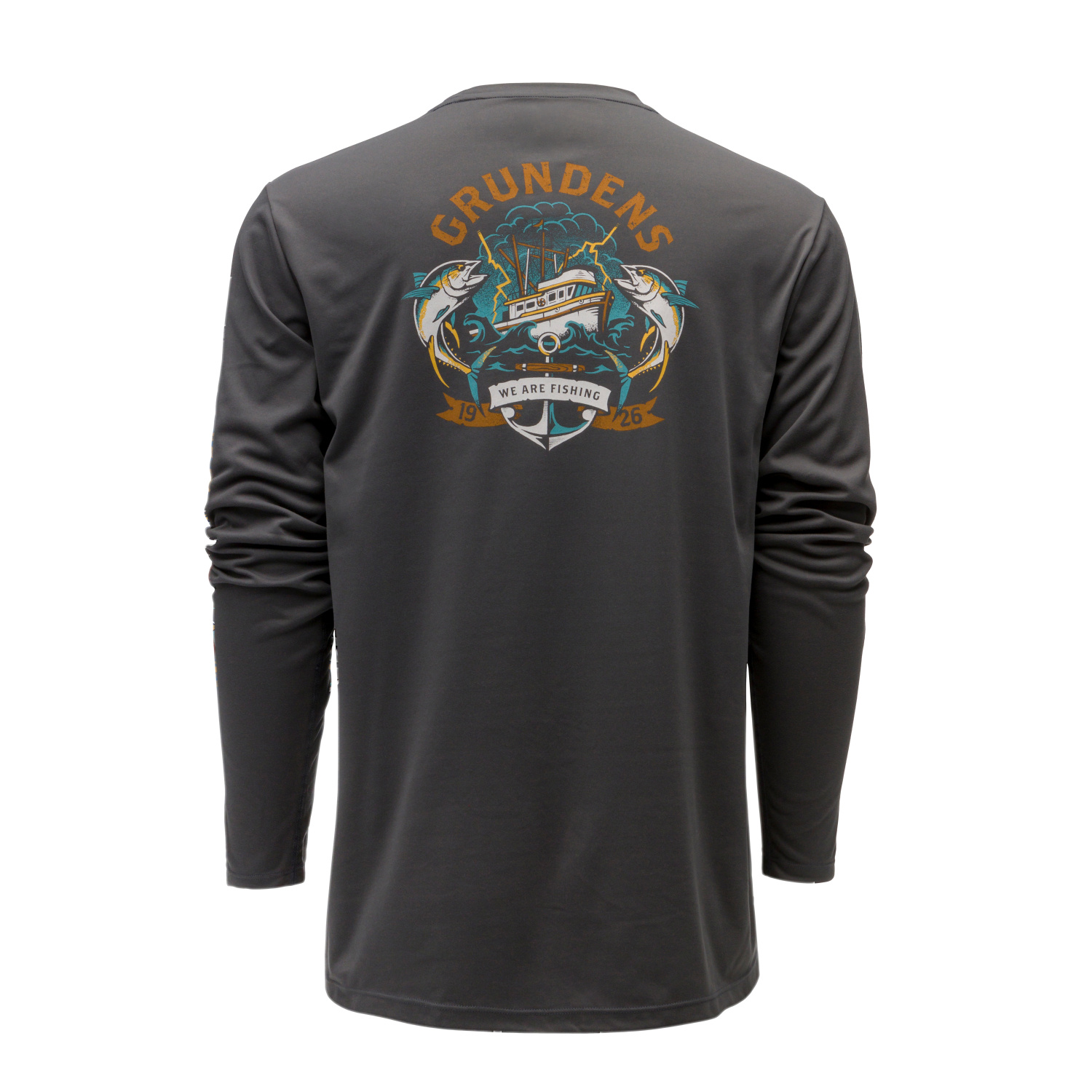 Grundéns Tuna Tattoo LS Tech Tee Anchor - Høy ytelse UPF 50 solbeskyttelse i en komfortabel og allsidig hverdagstee med en morsom dose Grundéns-grafikk børstet Polyester er fukttransporterende, hurtigtørkende og myk, forsterket med en Anti-Odor Finish Grundéns-bygget fra grunnen av.