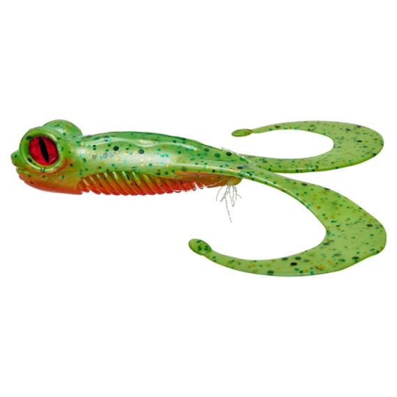 Mama Bull Frog er et stort målkjøp som kan svømme i hvilken som helst hastighet. Vi har økt tykkelsen ved basen av bena for å forsterke vibrasjoner og glidende effekt av agnet når det synker. Prøv lange pauser under innhenting for å la agnet falle fristende foran eventuelle store fisk som følger. Den doble grub-svansen og den store kroppen forflytter mye vann, som fungerer sammen med de pulserende bena for å skape en bemerkelsesverdig forførende handling i vannet. Mama Bull Frog fortrenger mye vann, skiller seg tydelig ut og sender en tydelig melding til rovdyr om at det er verdt å undersøke! Disse detaljene hjelper til med å tiltrekke spesialfisk til agnet ditt og øke positive hugg. Anisflavour.
