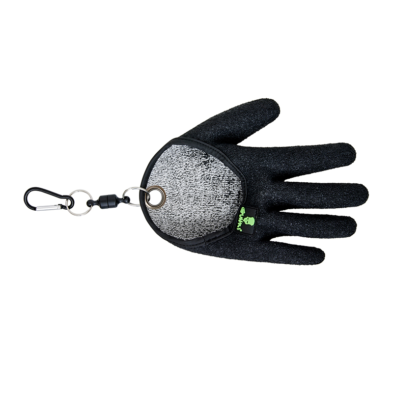 En praktisk hanske som gir tryggere håndtering av gjedde, spesielt når fisken skal avkrokes ved båtkanten eller på avkrokningsmatte. Overflaten gir godt grep på slimete fisk, samtidig som materialet beskytter mot skarpe gjeddetenner og gjellelokk. Hansken er ergonomisk utformet, sitter tett uten å føles stiv og kan enkelt tas på med én hånd når det plutselig hugger.