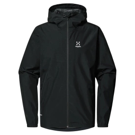 Haglöfs Kaise GTX Jacket Men True Black - Å gå i regnet er fortsatt bedre enn å holde seg inne. Spesielt når du er forberedt på det. Denne jakken er ideell for dagsturer og mikroeventyr. Den er laget av 2-lags GORE-TEX, som garantert holder deg tørr™, med et ytre lag av resirkulert polyester. De elastiske mansjettene og den justerbare hetten og nederkanten gir perfekt passform og bidrar til å holde været ute. De har også praktiske lommer med glidelås for småting.
