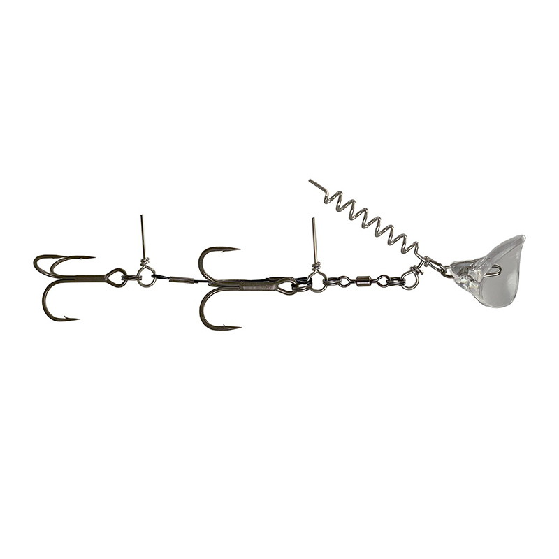 RockerHead Stinger Shallow er en gjennomtenkt stinger-rigg til Headbanger FireTail når det skal fiskes grunt og sakte med mye liv i halen. Den transparente polykarbonat-hodet løfter softbaitet opp og gir en lokkende rulling hvor agnet ofte vrir seg 90 grader til siden ved pauser. Det trigger spesielt fisk som følger etter, men trenger litt ekstra for å ta.