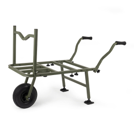 Den smarte rammekonstruksjonen gjør at barrowen kan foldes mindre enn de fleste carp-barrower, noe som gjør den enklere å få inn i bil eller bod. To solide uprights foran gir oppheng for bøtter og bager, og hindrer stangbaggen i å skli fremover. Komfortable skumhåndtak gir godt grep under tunge lass, mens et slitesterkt dekk og store Korum mudfeet sørger for godt feste og stabilitet på gjørmete eller ujevnt underlag.