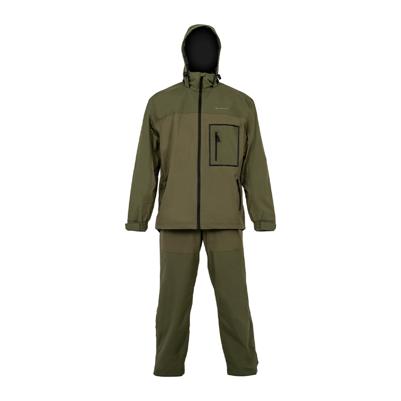 Denne vanntette dressen er laget for lange turer langs elv, vann og kyst når været ikke spiller på lag. Jakken skjermer godt mot vind og regn, mens bukse med seler hindrer at vann trenger inn i midjen når en bøyer seg over båtripen eller går i sivkanten. Passer like godt til aktivt fiske med mye forflytning som til stillesitting ved vannkanten.