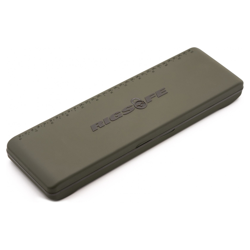 Den robuste plastboksen har en myk gummioverflate og en magnetlås som hindrer utilsiktet åpning. De riflede aluminiumlistene og høy-densitetsskumet sørger for at krokene festes trygt uten å skade spissene. På utsiden finnes målemarkeringer opp til 30 cm og 12 tommer for å binde rigger i perfekt lengde. Leveres med 30 enkelstifter og 20 dobbeltstifter.