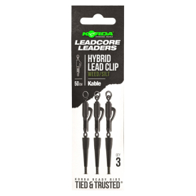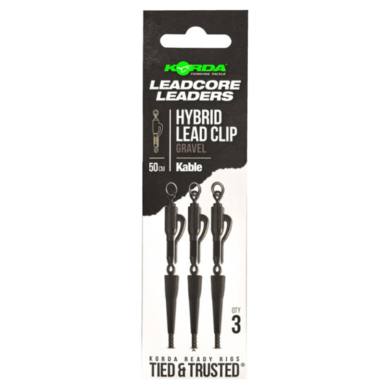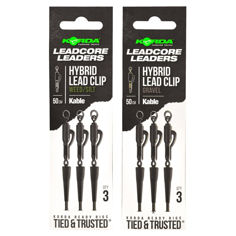 Hver leader er laget av vår ekstremt slitesterke og hurtigsynkende Kable Leadcore, med en Hybrid Lead Clip i den ene enden og en splittet løkke i den andre, slik at den enkelt kan festes og fjernes fra hovedlina.