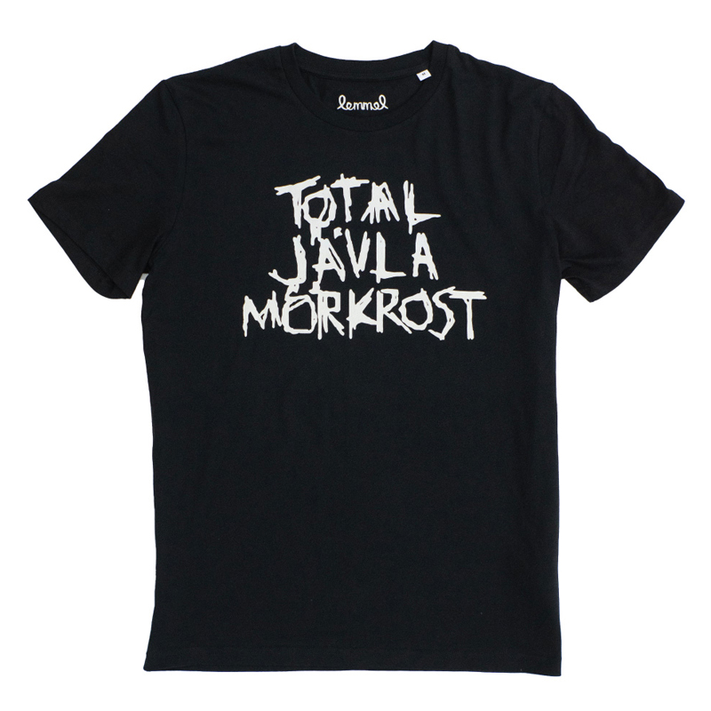 Stilig svart t-skjorte fra Lemmel med det ikoniske "Total Jävla Mörkrost"-trykket. Laget av 100 % bomull for maksimal komfort.
