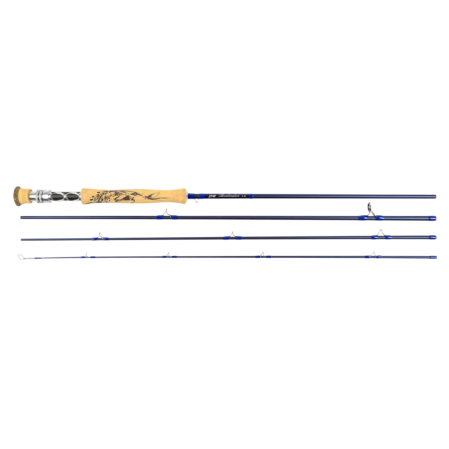 Pool 12 Accelerator er en høykvalitets fluestang designet for fiskere som ønsker både styrke og finesse. Den slanke klinga av 40 tonn TB-grafitt gir en jevn aksjon og optimal kasteytelse. Rullfeste i metall sørger for solid montering, mens AAA-korkhåndtaket med et elegant ørretmotiv gir et komfortabelt grep.