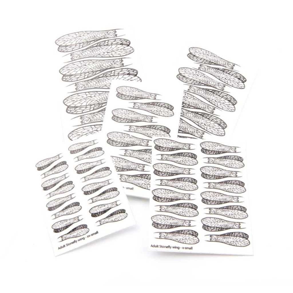 Med Pro Adult Stonefly Wings kan du enkelt lage realistiske steinflueimitasjoner. Vingene er ferdigkuttet og kan bindes raskt mellom nymfeskallene. De kan også farges med markør for å matche resten av fluen.