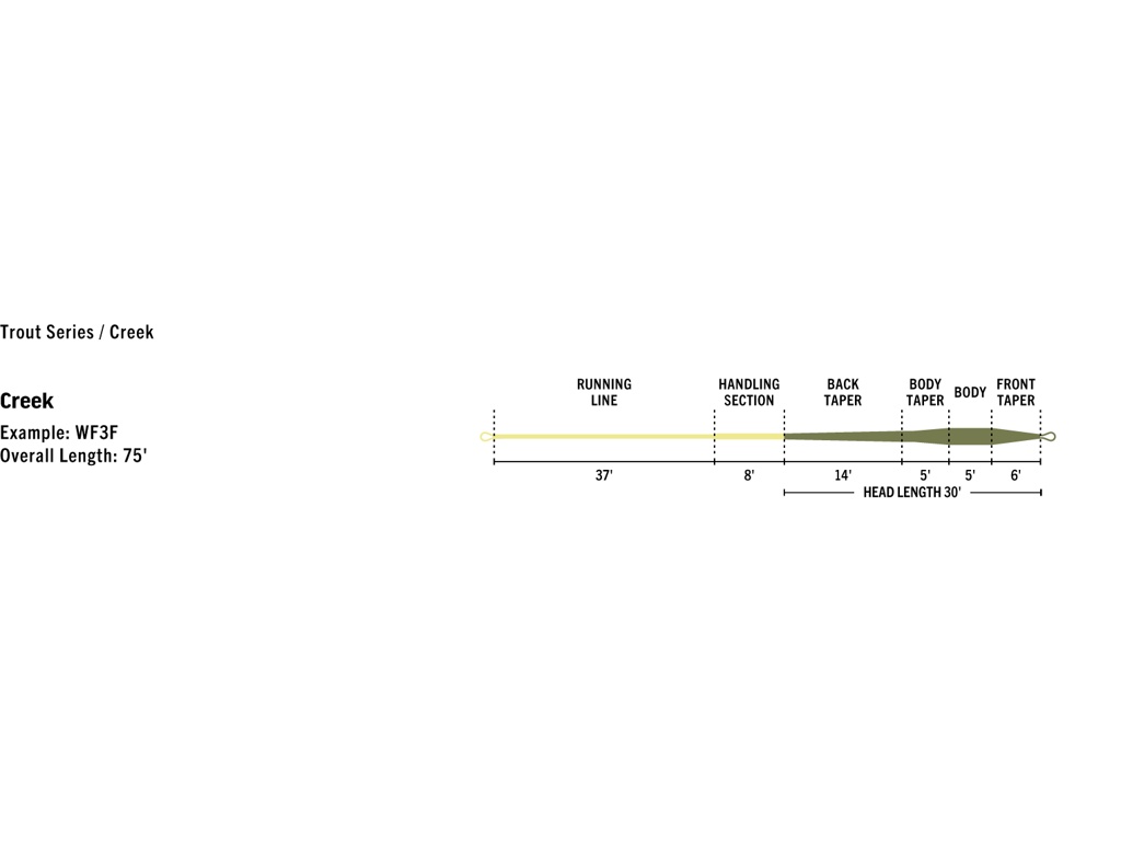 RIO Premier Creek er perfekt for fluefiskere som fisker i mindre vann. Med en klump på 9,1 meter og vektfordeling foran, gir denne linen maksimal kontroll på kast mellom 3-7 meter, men den fungerer også godt for lengre kast på opptil 10-13 meter. Linen har løkker både foran og bak, og med Rios SlickCast-coating oppnås minimal friksjon og maksimal kastelengde.