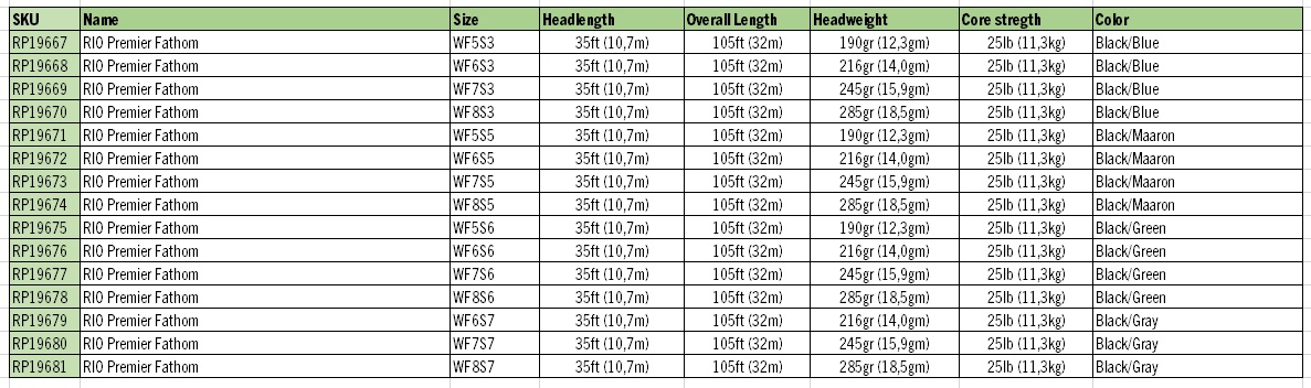 Rio Premier Fathom Synk 6 er en effektiv synkeline for fluefiske i innsjøer, utviklet for fiske med nymfer, streamere og boobyfluer. Med en middels lang klump og kort fronttapering lader den stangen raskt og gir lange kast. Linen synker med 6 tommer per sekund og når raskt fiskeområdet. Den har en Hang Marker 6 meter fra tuppen, som hjelper deg å stoppe eller sakke inn for å øke sjansene for hugg. To-farget design gjør det enkelt å se overgangen mellom klump og skyteline, mens SlickCast-belegget gir slitestyrke og myke kast.