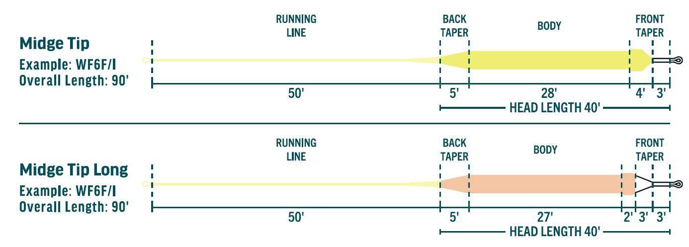 Rio Midge Tip er en fluesnøre for innsjøfiske, med flytende hovedsnøre og en synkende tipp som er perfekt for nymfer og chironomider.