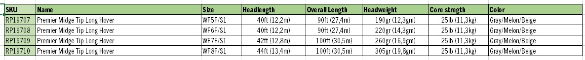 Rio Midge Tip er utviklet for innsjøfiskere som ønsker å fiske i de øvre vannlagene. Snøret har en flytende hoveddel kombinert med en 3ft eller 6ft klar intermediate-tipp (synker 1,5 tommer per sekund) eller en hover-tipp (synker 1 tomme per sekund). Ideelt for fiske i grunne bukter, nær innsjøkanter eller over vegetasjon. Bygget med en smidig Coldwater-kjerne og SlickCast-belegg, gir dette snøret minimale friksjon og lange kast. Med sveiste løkker foran og bak for enkel montering er dette en må-ha-løsning for alle som fisker i innsjøer.