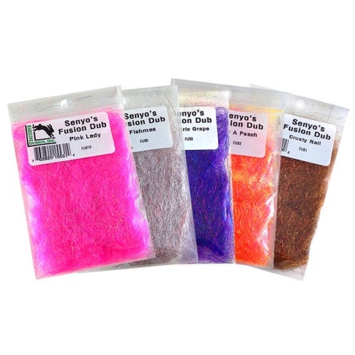 Senyo Fusion Dub er et syntetisk dubbingmateriale med relativt lange fibre, noe som gjør det ideelt til å bygge hoder på streamere og andre store fluer. Det egner seg også godt til tradisjonell dubbing og for å lage kropper på forskjellige fluemønstre. Dette materialet er spesielt populært blant fluebindere som lager laks- og sjøørretfluer, takket være dets allsidighet og flotte utseende. Senyo Fusion Dub er enkelt å jobbe med og gir et profesjonelt resultat.