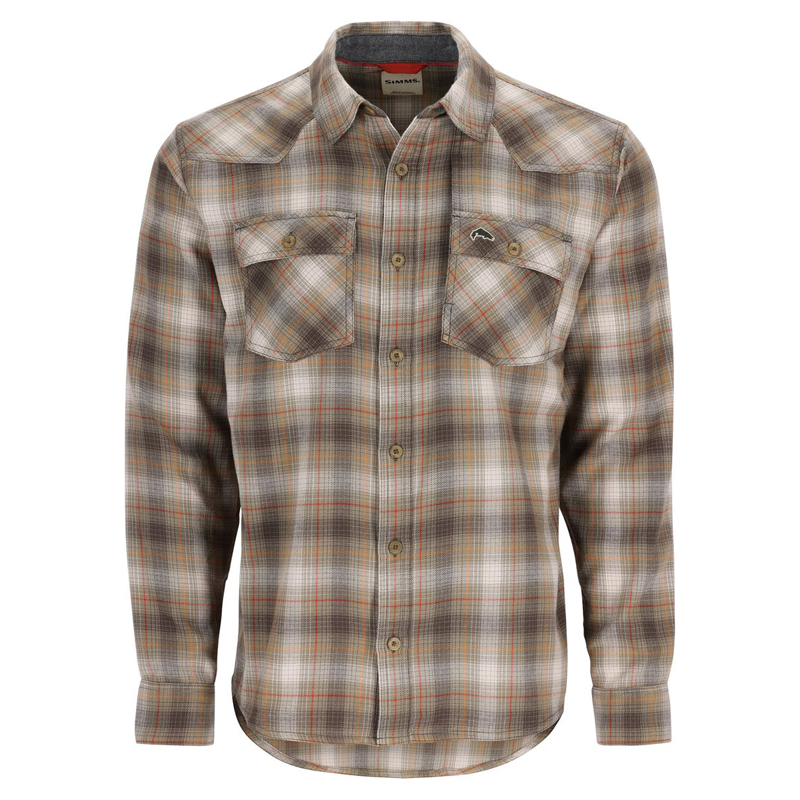 - Den lette, børstede flanellen er supermyk å ta på, men fungerer godt når fuktighet må transporteres bort fra kroppen. - Med skjult trykknapper i kragen og nedknappet frontåpning. Chambrayfôret krage, mansjetter og midtstolpe foran for et eksklusivt utseende og finish. - To brystlommer med knappelukking. Den venstre brystlommen har en skjult tredje lomme på baksiden, som er stor nok til å romme en telefon eller andre viktige ting, samt en løkke for tilbehørssnorer. - Subtile vestlige bærestykker foran og bak, skåret på skrå for økt bevegelighet. - Avsluttes med en tradisjonell skjortehalekant.