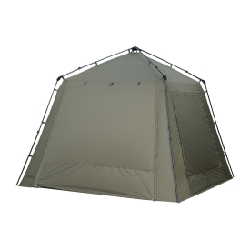 Duken i 8 000 mm HH 210D PU-belagt polyester gir solid beskyttelse mot regn og ruskevær. Med medfølgende stangsett kan du bygge ut et fortelt i front, og du kan velge mellom grønn frontpanel eller mozzie mesh i døra avhengig av vær og insektsmengde. To store sideventiler med mozzie mesh gir god lufting på varme dager uten at du slipper inn mygg.