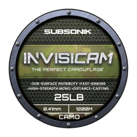 Invisicam er en premium monofilament hovedsene med et gjennomgående, spraglete kamuflasjemønster i grønn-brun-svart. Det høykontraste mønsteret bryter silhuetten og gjør sena lite synlig når den ligger langs bunnen, noe som er en fordel ved fiske etter sky fisk i klare vann.