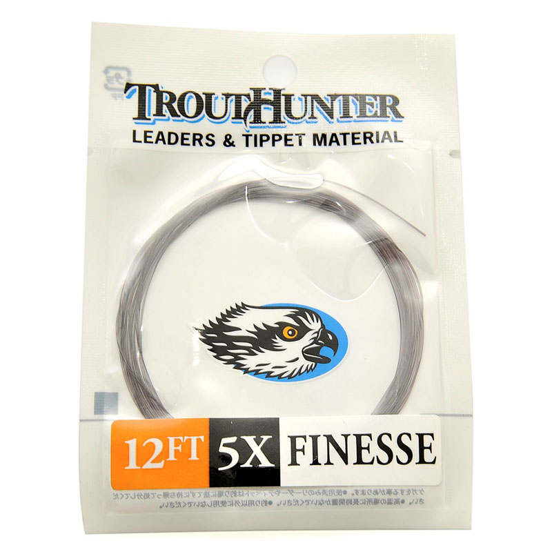 Trout Hunter Finesse Tapered Leader 12ft gir en presis presentasjon med lang baktapering og en myk materialstruktur. Ved bruk av ekstra spissmateriale, bør det være mykt nylon, helst Trout Hunter sitt eget. Hardere materialer anbefales ikke å kombineres.