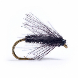 Umpqua Cdc Midge Black, en CDC tørr for ørret og harr, kan brukes hele sesongen i små innsjøer og elver. Laget for å imitere en voksen mygg.