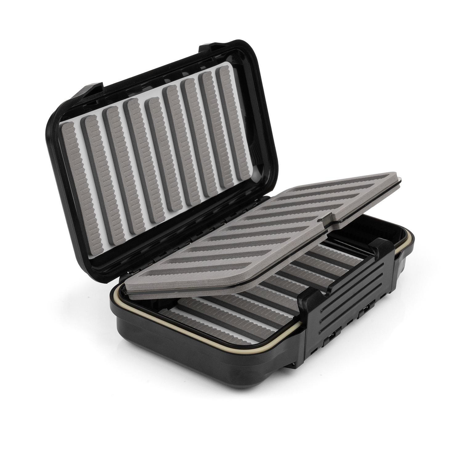 Boksen er laget i slagfast ABS-plast med vannsikker pakning som beskytter fluer mot regn, sprut og dyp vading. Den kraftige lukkemekanismen gir sikker låsing, men er fortsatt enkel å åpne med kalde eller våte fingre. De ytre målene er tilpasset vest, jakke og bærsystem, og den romslige høyden hindrer at hackel og vinger blir klemt.