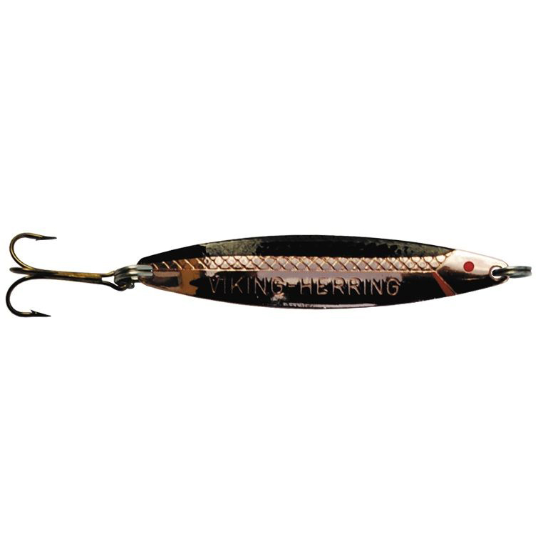 Den er laget av messing, har ringer i rustfritt stål, og diskantkrok fra MUSTAD, alle materialer er av høyeste kvalitet for å tåle saltvannskorrosjon. Viking-Sild-originalen er designet for lange kast, hemmeligheten ligger i den unike bøyningen av sluk. Tyngdepunktet til lokken er perfekt balansert. Flott sluk, spesielt for laks og ørret!