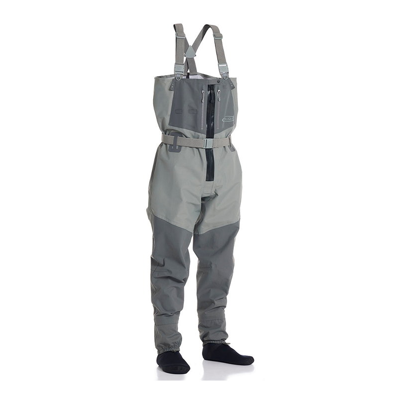 Innebygde grusskjørt (gravel guards) beskytter vaderføttene mot sand og småstein i vadeskoene, og anatomisk utformede neoprensokker gir god passform og komfort på lange økter. Tørkeløkker og solide beltestropper gjør håndtering og oppheng enkelt etter fisketuren.