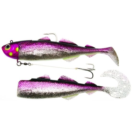Hun har vanvittig sexy bevegelser og svømmemønster - til og med sakte fisket - basert på ungsei - favorittfisken til de store trofeeksemplarene som jakter på hav og strender rundt Norge. Vi har inkludert to forskjellige kropper - krøllehalen for en jevn, ormelignende svømmehandling (selv ved laveste hastighet) - og padlehale for den "ta-meg-nå" sårede-panikkaktige-fisk-handlingen. Vi har brukt år på å teste og perfeksjonere bevegelsen, og prøve ut alle mulige endringer i form, størrelse og vektfordeling. De erfarne guidene fra nordisk havfiske som testet den synes nå vi har lykkes - og noen skremmende store fisker er enige!