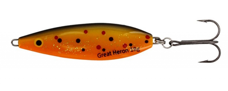 Great Heron er en skje som er designet i henhold til finske agnfremstillingstradisjoner. Den ble laget og testet i samarbeid med erfarne sportsfiskere fra Finland og Sverige.