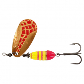 Det vakkert utformede messingbladet vil reflektere lys fra forskjellige vinkler. Den roterer ved den minste berøring av snellehåndtaket og setter i gang de bevegelsesimpulsene som ingen ørret, laks eller andre rovdyr kan motstå. Dette er rett og slett den flotteste og mest attraktive spinneren som finnes, og de sterke krokene i japansk stil vil tåle testen til selv de hardeste kampfiskene.