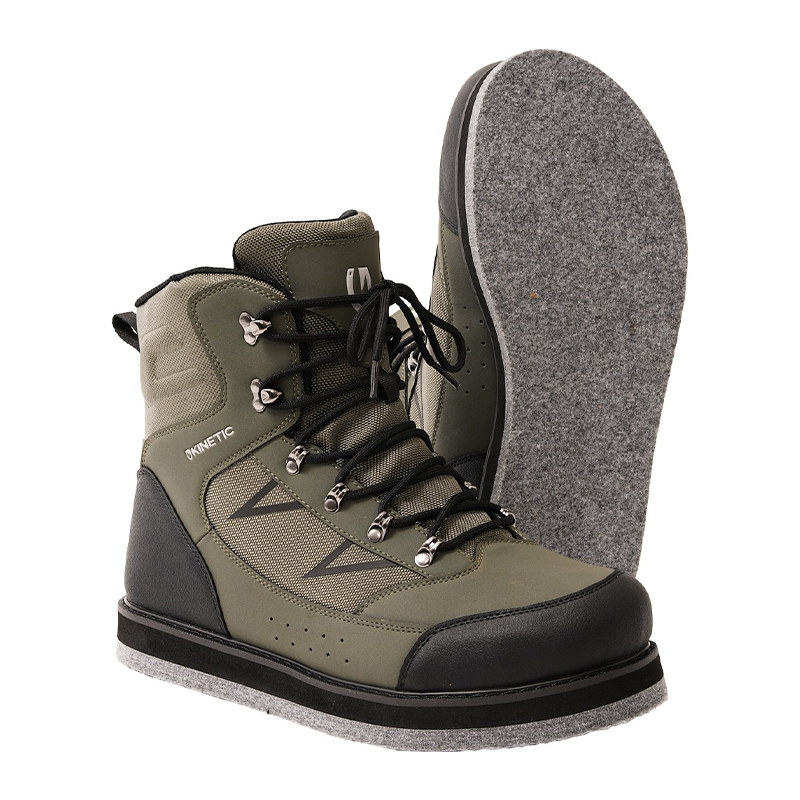 Gå trygt med Kinetic Wading Boots, som er designet for alle sportsfiskereventyr. Enten du manøvrerer gjennom gjørmete bredder eller krysser utfordrende bekker, sørger disse støvlene for komfort og holdbarhet som er avgjørende for seriøse sportsfiskere. Den sikre passformen minimerer tretthet, slik at du kan fokusere på gleden ved naturen.
