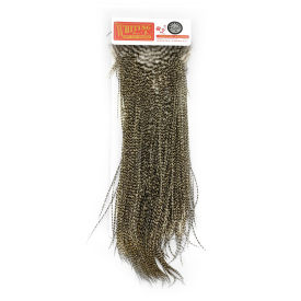 Whiting Silver Saddle gir de samme fantastiske egenskapene som Whiting Dry Fly pelts, men med små kosmetiske feil som ødelagte spisser. Disse ubetydelige feilene påvirker ikke ytelsen og gir utmerket valuta for pengene. Ideell for fluebindere som ønsker kvalitetsfjær til en rimelig pris.