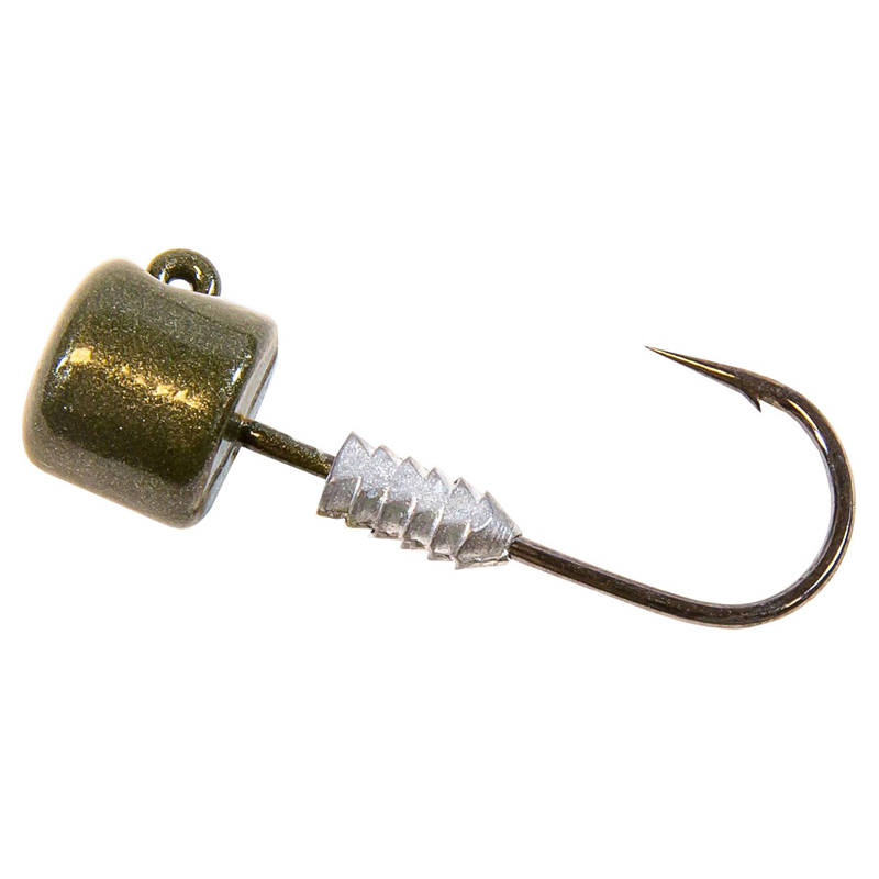 FUNKSJONER • Signatur soppformet hode foretrukket av finesseentusiaster • Kraftig Mustad® UltraPoint® kroker • Split keeper-design er lett å rigge og holder ElaZtech® og konvensjonell myk plast sikkert • Tilgjengelig i vektene 1/15, 1/10, 1/6 og 1/5 unse i grønt gresskar og svart finish • 5 jigheads per pakke